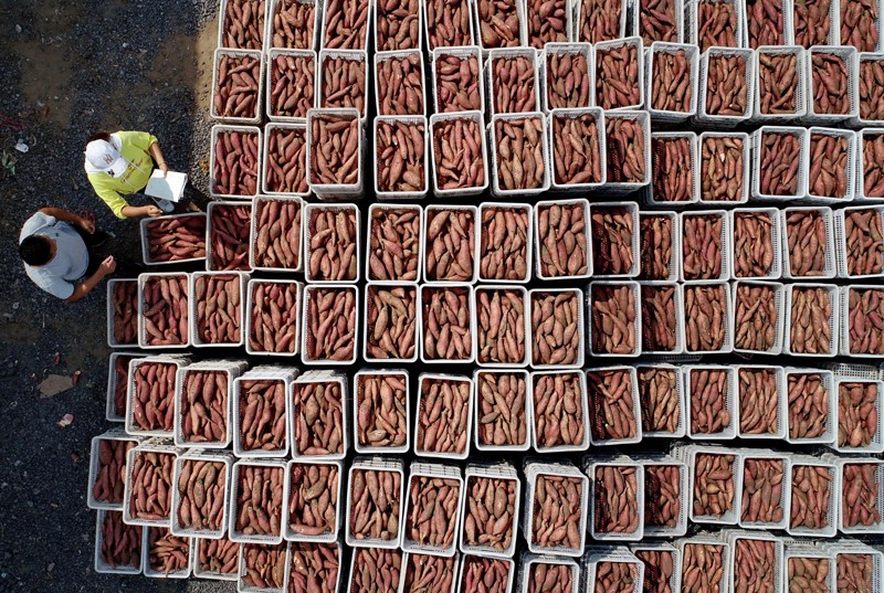河北省滦南县东黄坨镇新户村农民在清点收获的红薯。新华社记者 杨世尧 摄
