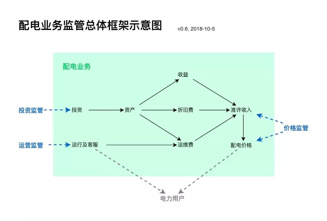 在“准许成本加合理收益”监管方式下,配电业务的合理成本能得到补偿,收益仅来自有效投资(收益率是社会公允水平)。