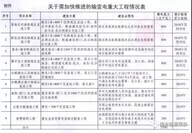 重点工程计划主要项目涉及西北、西南清洁能源外送至江苏、浙江等负荷中心,核准开工时间集中在年内及2019年,可谓时间紧迫。