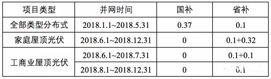 一、支持政策。在继续保持0.1元/千瓦时的光伏发电省级补贴政策的基础上, 2018年5月31日—12月31日并网的家庭屋顶光伏按0.32元/千瓦时标准给予2018年发电量补贴(发电量小于500小时的项目按500小时计);2018年6月1日—7月31日并网的工商业屋顶光伏按0.1元/千瓦时标准给予2018年发电量补贴。2017年全省普通地面光伏电站建设计划调整中,光伏小康工程同等条件下予以年度建设规模优先安排。