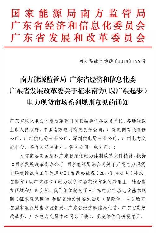 8月30日,南方能源监管局会同广东省经济和信息化委、广东省发展改革委联合公布《南方(以广东起步)电力市场运营规则体系(征求意见稿)》(以下简称《规则》),标志着我国首个电力现货市场交易规则正式问世。