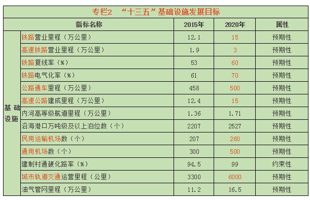 铁路:新增铁路营业里程2.9万公里,高铁增加约1.1万公里,高速铁路覆盖80%以上的城区人口100万以上城市。