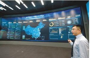 在国家电网车联网监控大厅,工作人员向记者介绍车联网平台。 郑永生 摄