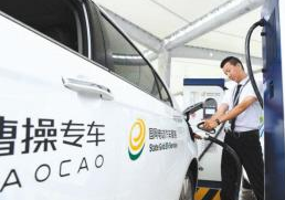 国网电动汽车公司工作人员在为电动专车充电。许畅 摄