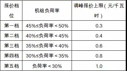 第二十一条 深度调峰交易采用阶梯式、分机组报价,以机组各档负荷率作为一个报价区间,随负荷率降低而增加,其中下一档报价不得低于上一档报价。具体负荷率分档及报价上限见下表。