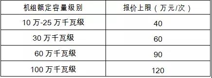 第三十一条 卖方火电企业按照机组额定容量级别报价,各级别机组的报价上限见下表: