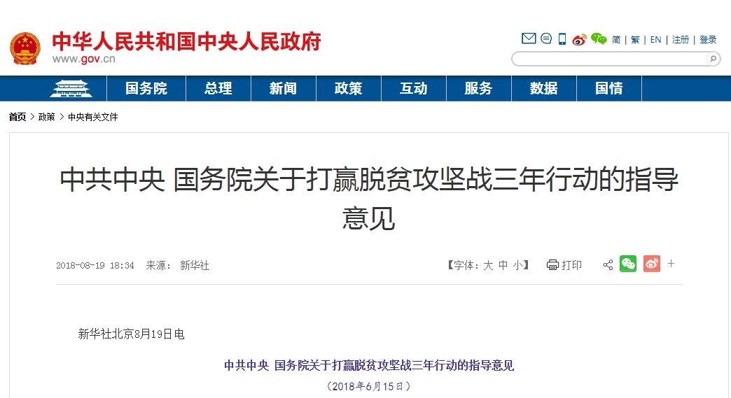 按照党的十九大关于打赢脱贫攻坚战总体部署,根据各地区各部门贯彻落实《中共中央、国务院关于打赢脱贫攻坚战的决定》的进展和实践中存在的突出问题,现就完善顶层设计、强化政策措施、加强统筹协调,推动脱贫攻坚工作更加有效开展,制定以下指导意见。