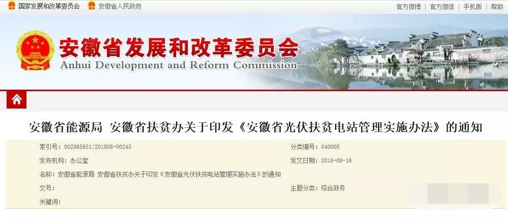 安徽发改委:组织辖区内光伏扶贫电站实施 补助资金优先发放