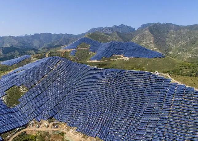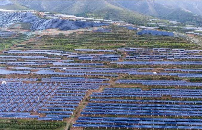 山西芮城电站是全国最大的集中式光伏电站,投资达88亿人民币,放眼望去,绵延40公里全是光伏板,满山蓝色的“灰甲”,源源不断地收集着阳光,将太阳能转化为电能,然后再通过电网输送到有需要的地方。