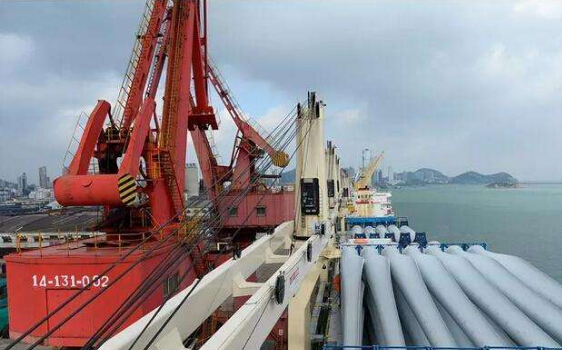 天恩轮是我国自主设计、中国船厂独立建造的高冰级多用途商船,能在0.8米厚度的冰层航行。此次也是天恩轮北极东北航道的处女航。船上的这些庞然大物是天恩轮运往法国、荷兰和瑞典等国港口的风力发电设备。此次天恩轮运输风电设备共37000立方米。