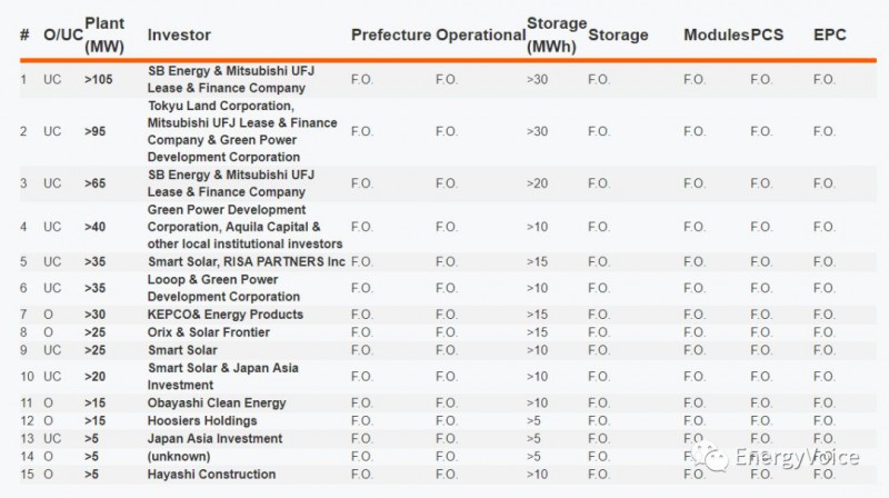 目前,光伏项目与储能相结合的机会已经大量涌现。为了了解日本对与基于储能的光伏项目的需求度,我们搜集整理了日本最大的15个光伏+储能项目名单,包括已投入运营和正在建设的项目。