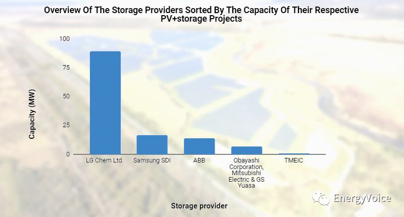 LG Chem Ltd.在日本的储能市场份额中占据主导地位。该公司为2个已投入运营(共6个)和5个正在建设的光伏储能电站(共9个)提供储能设备,在日本目前15个光伏储能项目中约占47%。