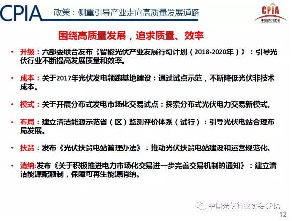 熊处长表示,中国光伏行业取的了巨大成就,国家能源局坚定地支持光伏行业的发展。但是站在光伏装机已达150GW的新阶段上,我们行业的发展应从重规模转到提质增效上。要发挥太阳能无处不在的优势,大力发展就近开发,就近利用,推动清洁能源消纳,坚持质量第一。下一步,能源局将继续在领跑基地开发,光伏扶贫,平价上网示范,分布式市场化交易等方面发力,推动光伏行业健康发展。