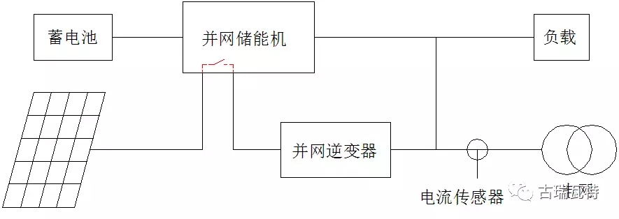 在一些国家和地区,之前装了一套光伏系统,后取消了光伏补贴,就可以安装一套并网储能系统,让光伏发电完全自发自用。并网储能机可以兼容各个厂家的逆变器,原来的系统可以不做任何改动。当电流传感器检测到有电流流向电网时,并网储能机开始工作,把多余的电能储存到蓄电池中,如果蓄电池也充满了,还可以打开电热水器。晚上家庭负载增加时,可以控制蓄电池通过逆变器向负载送电。