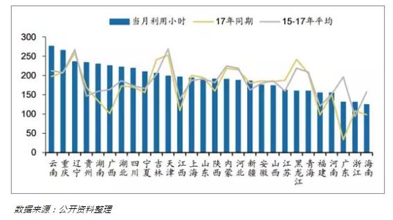 同比来看,2018年5月广西(124小时)、广东(98小时)和湖南(96小时)利用小时同比 提高较多,而青海(-45小时)、天津(-54小时)和黑龙江(-82小时)利用小时同 比回落较多。
