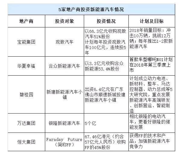 在新能源汽车产业的巨大蛋糕面前,所有参与者都在争夺坐上饭桌的机会。传统企业在现有利益和市场趋势中权衡、互联网车企仍在摸着石头过河、核心零部件公司需要时间构建技术壁垒,相比来说,极具资金和资源优势的地产商,反而更容易通过大手笔的投入和兼并重组走上前来。