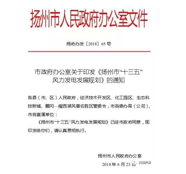 《扬州市“十三五”风力发电发展规划》正式印发!四个区1592.8MW!