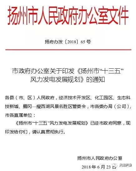 《扬州市“十三五”风力发电发展规划》正式印发!四个区1592.8MW!
