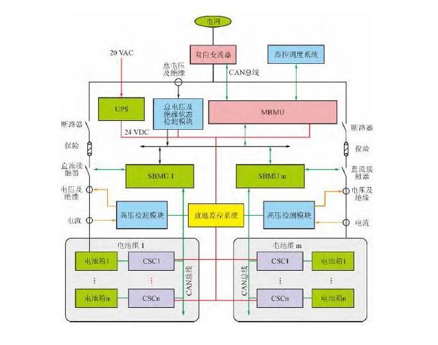 储能系统的通讯,电池管理系统主要与变流器和储能电站调度系统有信息交互关系。一方面,电池管理系统给变流器发送重要状态信息,确定高压电力交互情况;另一方面,电池管理系统给储能电站的调度系统PCS发送最全面的监测信息。如下图所示。