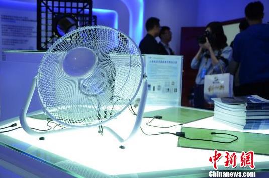 图为用石墨烯OPV供电的电扇,在微弱光线下依然正常运转。 郝学娟 摄