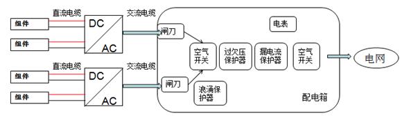 8kW的光伏系统若采用两台逆变器,则组件、直流线缆、逆变器、交流线缆组成两个独立的系统,并通过后面配电箱汇总并入电网。因此在系统故障分析时要看成两个独立的系统。