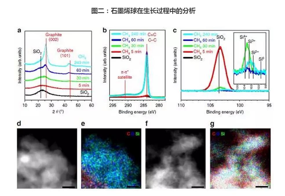 a)-c) 生长石墨烯前的SiO2纳米球;