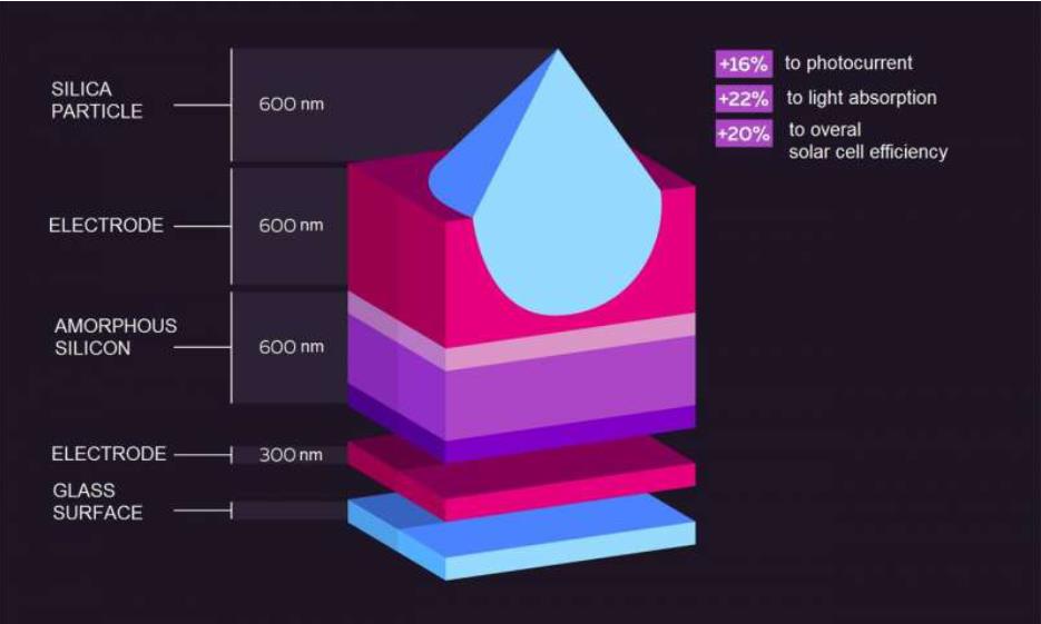 Omelyanovich说道:“三年前,我们试图用微球覆盖太阳能电池表面,虽然光吸收率大大提升,但反射率也变高了。因此,我们决定去掉球体的上半部分,制作一种类似于镜面一样能将光线聚焦到电池中的东西。然而,在实施这个设想的过程中我们发现了一种更好的结构。总的来说,最终实验结果好于根据理论所估算出的预期效果。”