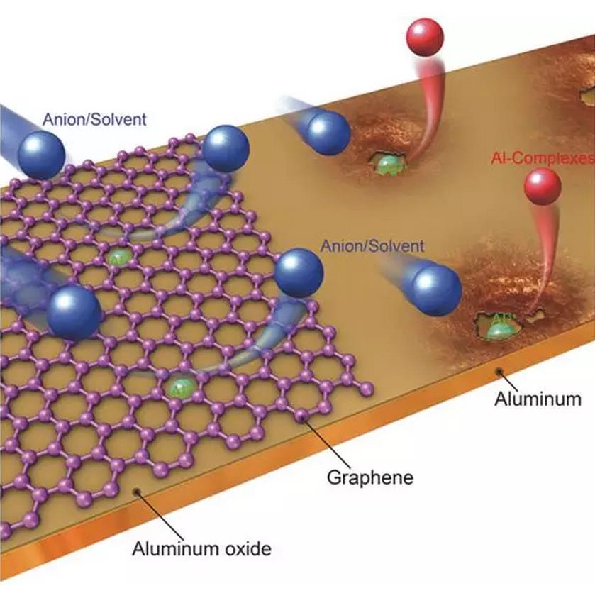 图1.石墨烯包覆铝箔集流体的抗电化学腐蚀的示意图