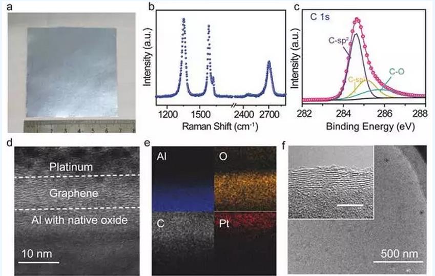 图2. 通过PECVD法制备石墨烯包覆铝箔的合成与表征