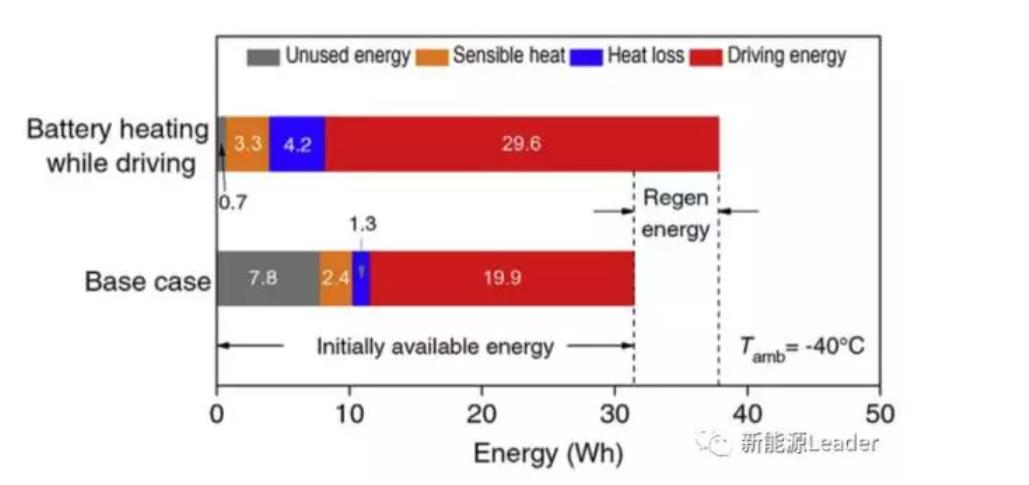 下图为下图为自加热实验组电池在不同的温度下能够用于驾驶的能量变化曲线,从图上可以看到,在-30,-20,-10和0℃下,电池能够用于驾驶的能量分别为常温下的78%,80%,85%和90%。同时自加热电池设计和管理策略对于未来的高比能电池仍然十分有效,计算表明,当锂离子电池的比能量提高到300Wh/kg,在-40℃下电池用于加热的能量会从现在的8.7%下降到4.8%,热量损失能够从11.9%下降到6.6%,可用于驾驶的能量能够从74%,提高到85%,通过进一步改善电池的保温性能,还能降电池可用于驾驶的能量进一步从85%提高到94%。