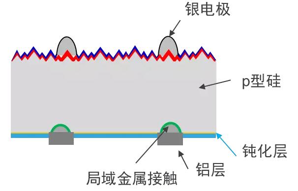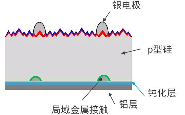 PERC电池(Passivated Emitterand Rear Cell)最早起源于上世纪八十年代,1989年由澳洲新南威尔士大学的MartinGreen研究组在AppliedPhysicsLetter首次正式报道了PERC电池结构,当时达到22.8%的实验室电池效率。到了1999年其实验室研究的PERL电池创造了转换效率25%的世界纪录。PERC电池的实验室制备,采用了光刻、蒸镀、热氧钝化、电镀等技术。PERC电池与常规电池最大的区别在背表面介质膜钝化,采用局域金属接触,大大降低被表面复合速度,同时提升了背表面的光反射。