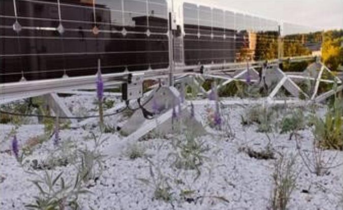 最重要的是,研究人员发现装有双面太阳能组件的竖向排列式光伏系统很适合屋顶种植区。东-西走向的组件排列尤其可以解决用电高峰时段的电力供应问题。根据Solarspar,白色岩蔷薇、百里香等银灰色植物可提高太阳光的反射率,从而提高光伏系统发电量。