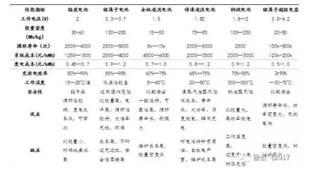 表1:主流电化学储能技术性能比较