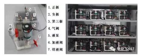 图8:锌镍单液流电池单体(左)与电池组(右)