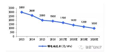 图14:近年来锂离子电池成本快速下降