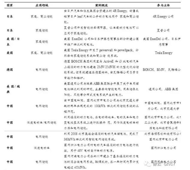 表7:国内外已逐步开展各类动力电池梯次利用储能示范项目