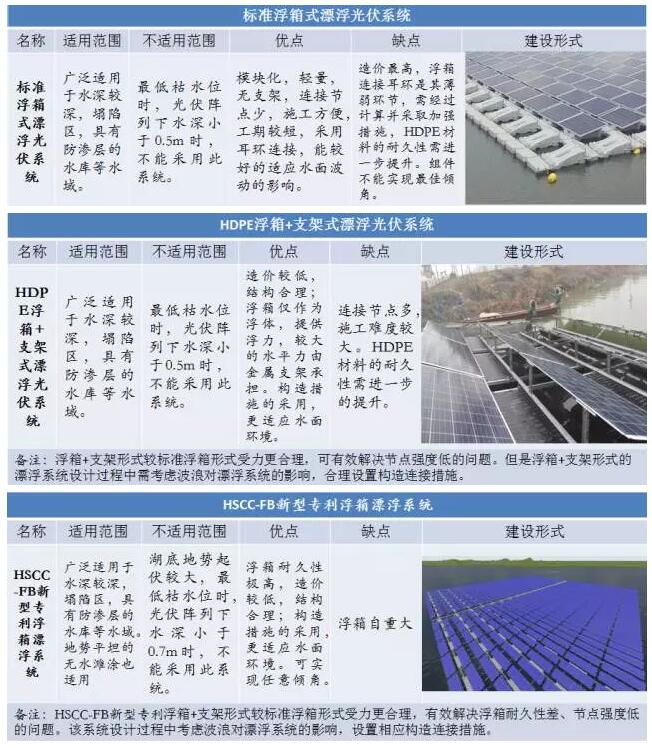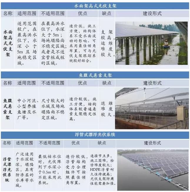 二、各种水面光伏电站建设形式的优缺点及适用范围