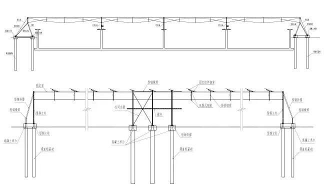对于大跨度、施工难度大、造价高、高空间等特点的光伏电站建设场地,可采用创新型“鱼腹式钢索柔性支架”的形式建设,利用“鱼腹式钢索柔性支架”技术可以提供整体解决方案。可有效解决了利用大跨度空间建设光伏电站的难题,突破大跨度、高空间环境下光伏组件容易出现隐裂等难点。
