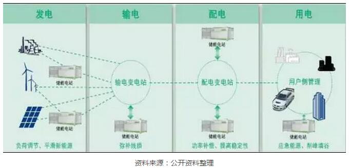 储能可以对电力进行存储,在需要的时候释放,能够有效解决电力在时间和空间上的不平衡。储能技术的应用贯穿于电力系统发电、输电、配电、用电的各个环节。