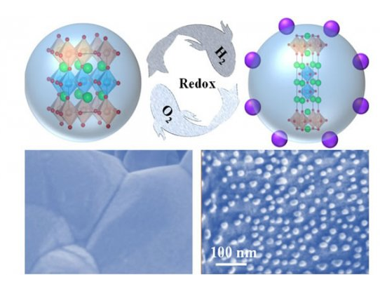 钙钛矿是被广泛研究的SOEC阴极材料,但催化活性低。在钙钛矿阴极原位溶出金属纳米颗粒来构筑高活性金属-氧化物界面,可有效提高CO2电解性能。钙钛矿中金属纳米颗粒的可逆溶出/溶解,是解决SOEC长期运行过程中颗粒团聚和积炭引起电解性能下降的有效方法。然而,目前对于钙钛矿材料的可逆溶出/溶解机制尚不明确,亟待进一步深入研究。