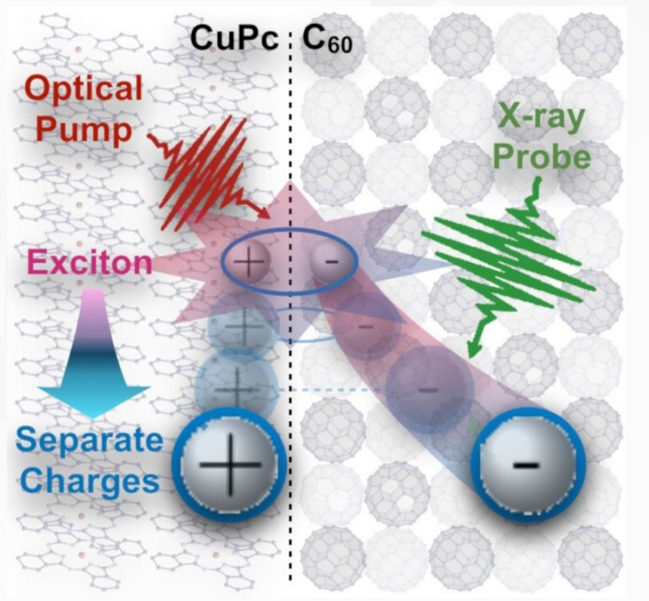 在DESY自由电子激光器FLASH的帮助下,研究人员用超短的红外和X射线激光照射酞菁铜:富勒烯(CuPc:C60)材料,以290飞秒的时间分辨率研究其电荷产生机制。
