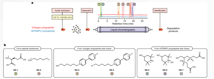 在测试中,这种有机电池满足了几个重要的条件。首先,这些电极在操作过程中发挥了它们作为活性材料的作用,在整个过程中保持稳定。之后,这些组件能够通过将它们置于酸性条件下进行降解,从而留下氨基酸和其他良性的降解产物,以便重新使用或在环境中无害地溶解。