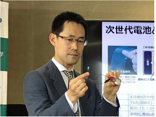 使用凝胶状电解质锂离子电池的优点是不存在起火或漏液的危险,而且切断之后也可以使用。森下正典表示这项开发耗时4年,起初与企业进行了2年的共同合作研究。可弯曲的锂离子电池可以用于多种用途,比如手表的腕带部分等。