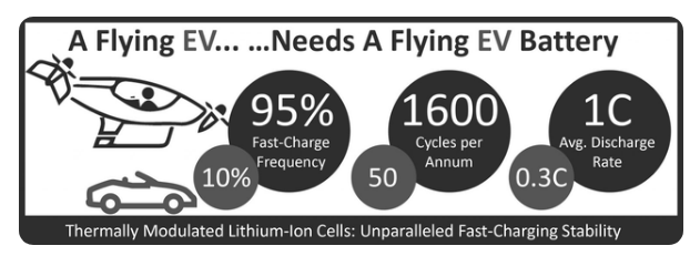 Wang和他的团队使用了他们一直在研究的电动汽车电池的技术,关键是允许快速充电而不伤及电池的锂尖峰。事实证明,对电池进行加热也可以使电池中持有的能量快速放电,从而实现起飞和降落。