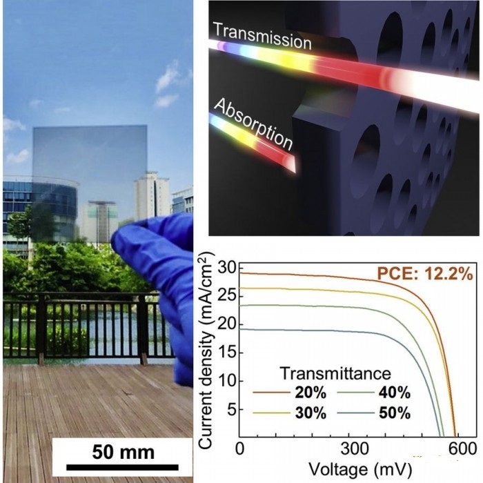 这些孔以精心设计的图案排列,肉眼是无法看到的。在测试中,透明太阳能电池具有长期稳定性,转换效率为12.2%。这与商用太阳能电池的20-25%的效率依然有很大的差距,但相对于目前正在开发中的 透明太阳能电池已经有了明显的改进。