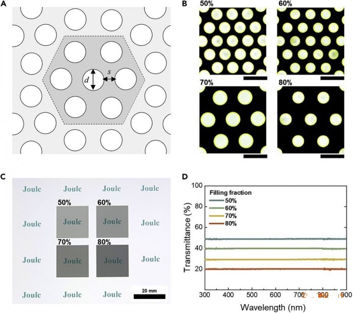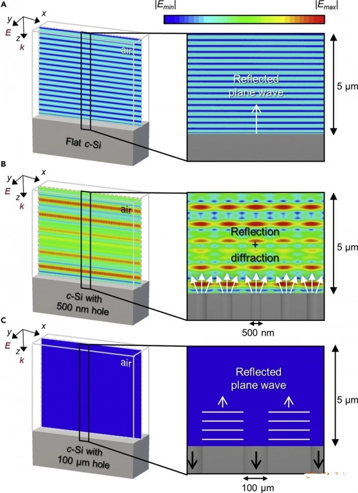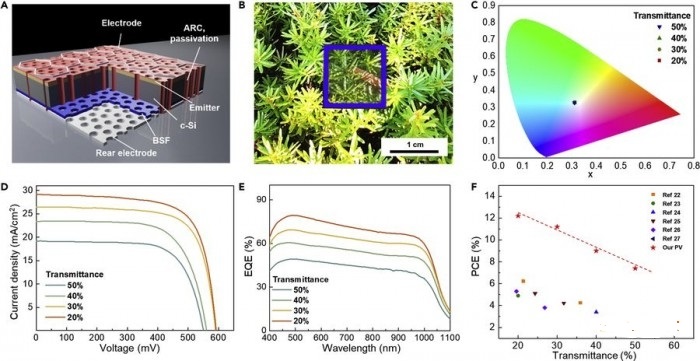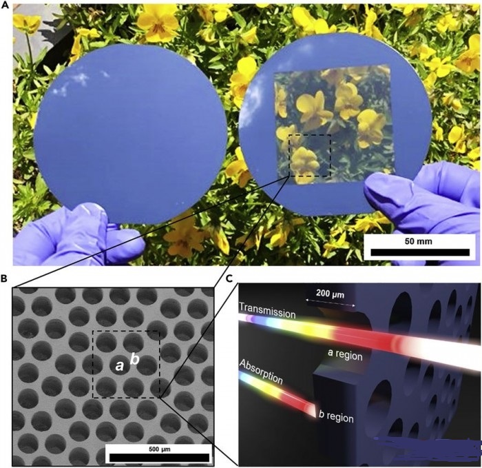 Seo和他所带领的团队在这方面取得重大突破,他们在晶体硅上钻出了一堆小小的孔。为了避免过去一直透明太阳能电池的偏红色调和其他颜色,研究团队在晶体硅上钻了跟人类头发丝大小的孔洞,允许光线穿过。