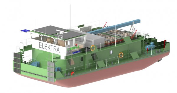 这艘创新的“Elektra”推船(push boat)由柏林港口仓储和物流公司BEHALA订购,由柏林技术大学海事系统设计和操作系开发,将配备德国推进专家SCHOTTEL的方向舵螺旋桨。