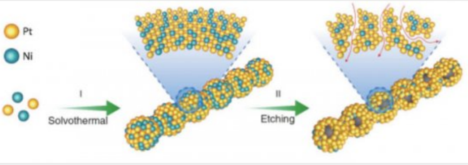 在燃料电池和金属空气电池中,铂是最活跃的氧还原反应电催化剂,具有良好的稳定性。然而,从成本和大规模商业应用方面考虑,哪怕是目前最先进的铂催化剂,其活性和稳定性仍然不足。利用纳米铂合金的近表面结构,来提高铂基电催化剂的电催化性能,这种方法非常有前景,可以最大限度地发现具有最佳性能的高活性位点。研究人员称:“加入其他过渡金属,通过配体和应变效应,调整铂-氧中间体的结合强度,可以提高催化剂性能。引入中空和多孔纳米颗粒等开放纳米结构,如纳米笼和纳米框架结构,有助于实现这一目标,并提升质量传递。”