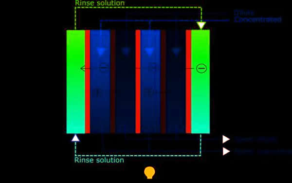 研究人员使用了一种叫做反向电渗析(RED)的技术,它依赖于盐溶液和两种离子交换膜。