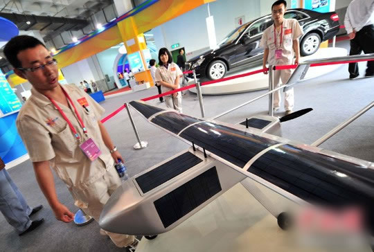 资料图:中国一款太阳能电池无人机在中国北京国际科技产业博览会”上亮相。